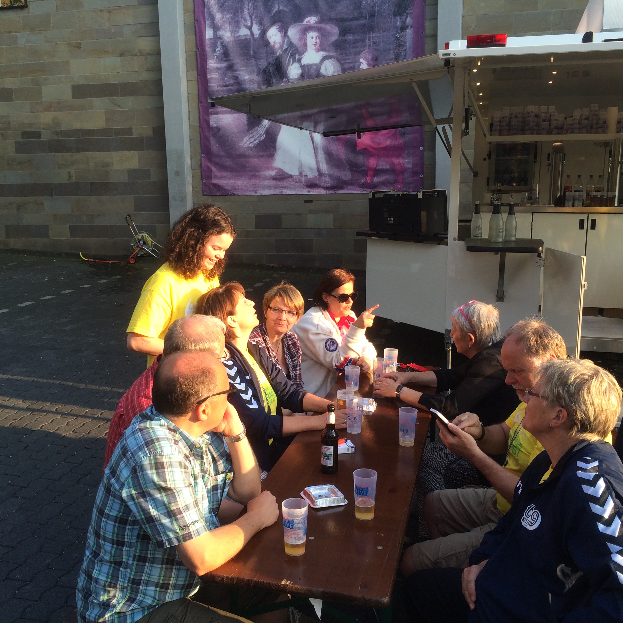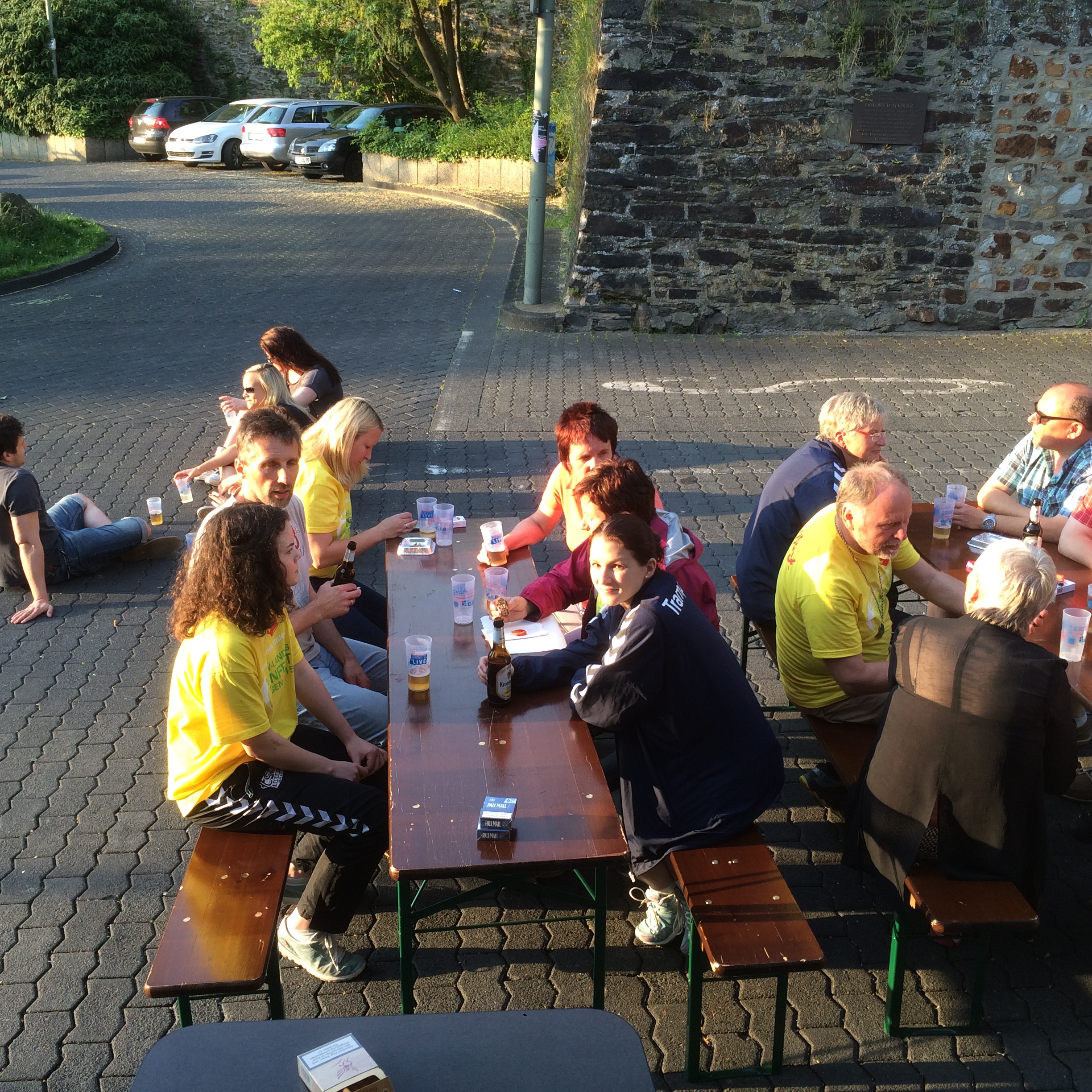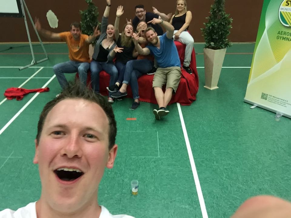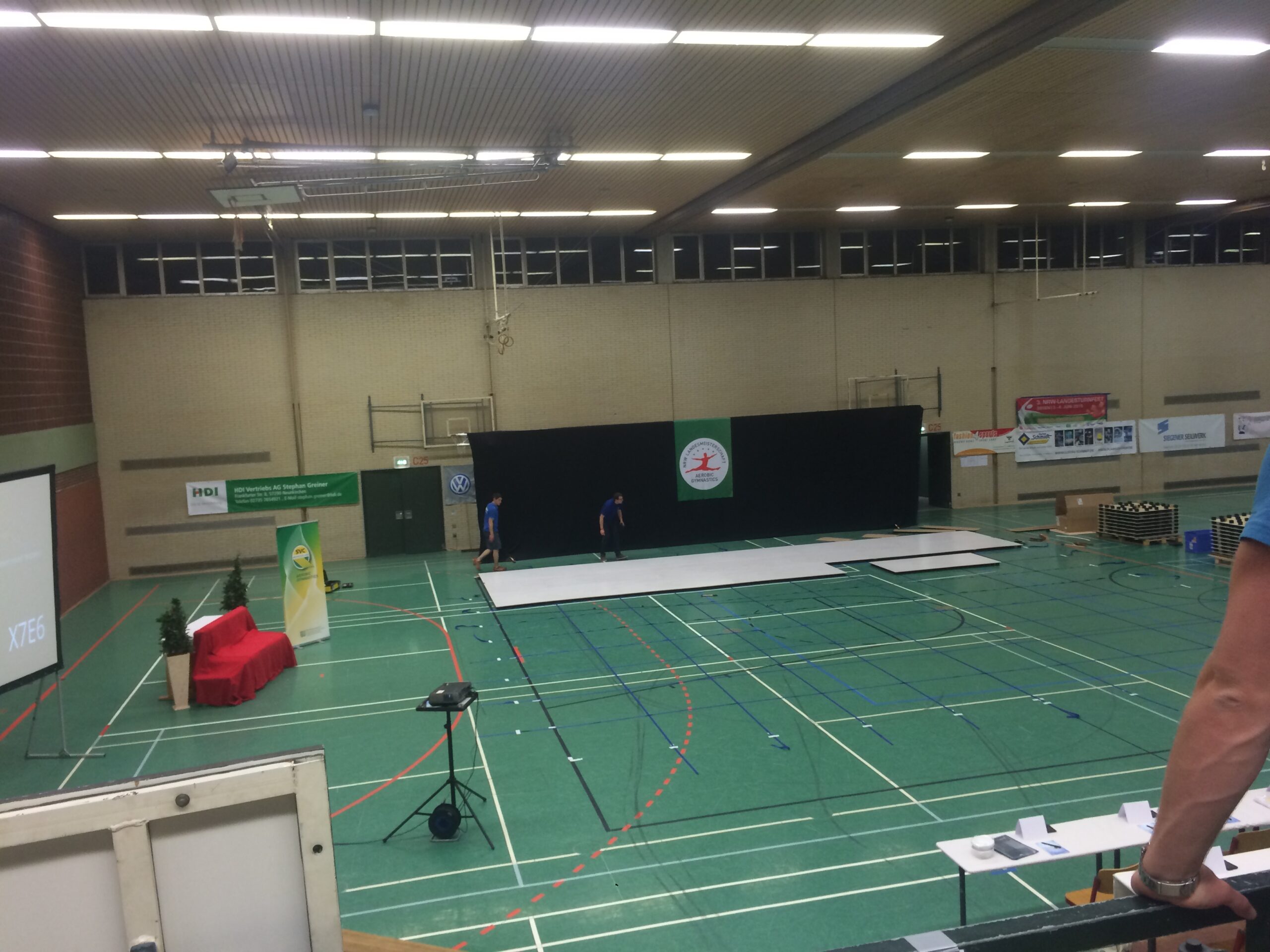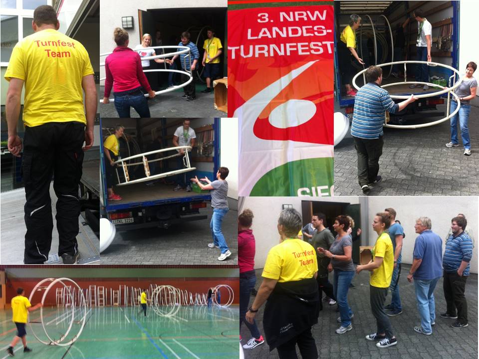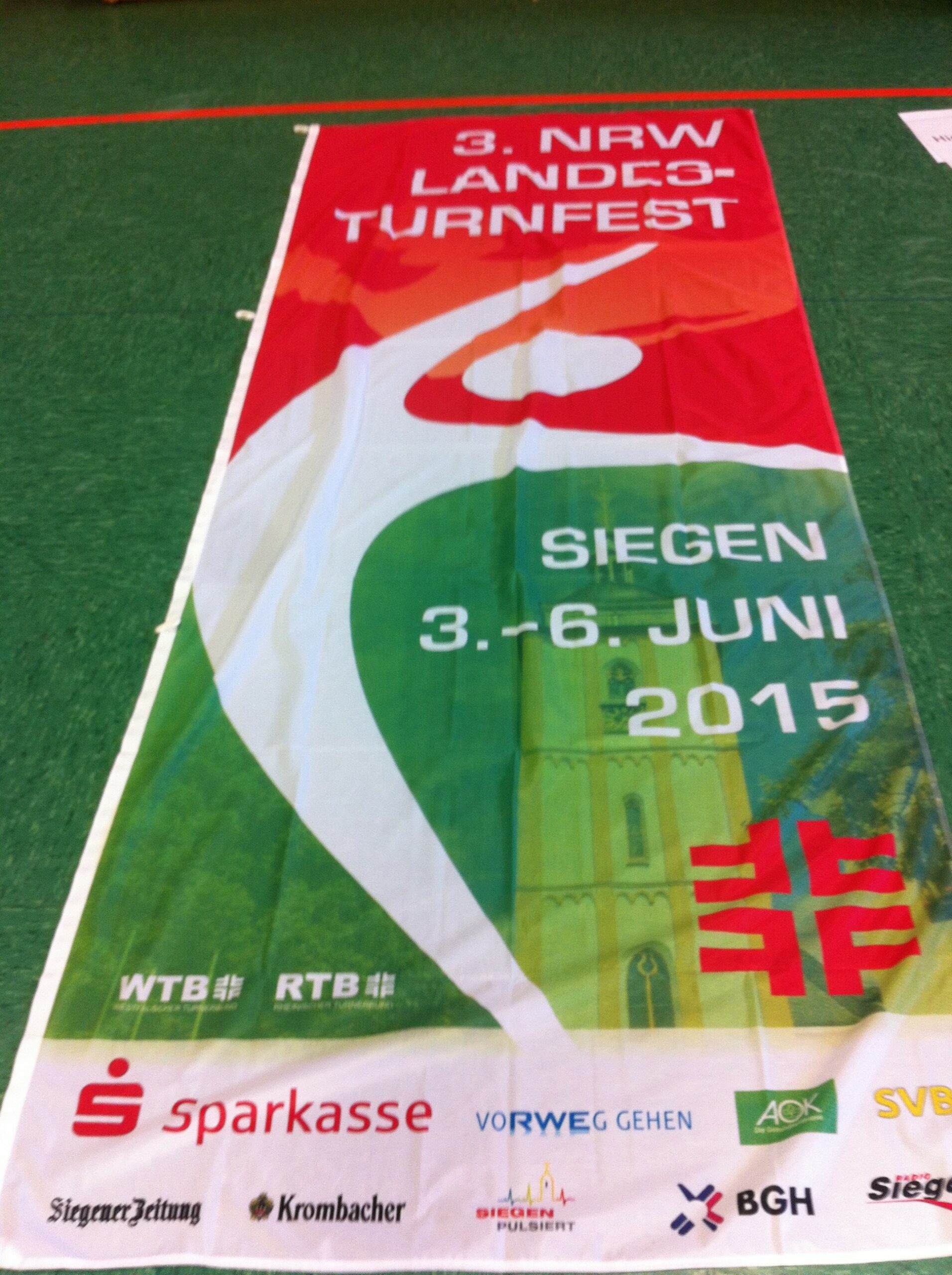 10. Juni 2015 By TSG Siegen lasst die Spiele beginnen… 30 Rhönräder fanden für eine Nacht eine neue Unterkunft! Der Aufbau des Caterings war schnell geschafft Wo es hier hin geht entscheiden immer noch WIR! ;.P Landesturnfest 2015 in Siegen! Wir waren dabei… und wie!! Freitag, 2. Wettkampftag: Trampolin Freitag Abend 23.00Uhr: 1/3 des Sportaerobic-Bodens steht. Der weitere folge bis 5.30Uhr morgens! Selbstverständlich wurde auch die Kiss&Cry-Area für die Sportaerobic getestet. Ergebnis: großer Spaßfaktor! Die Sonne rundete eine gelungenes Landesturnfest perfekt ab! Das Bier musste natürlich auch getestet werden 😉 Die Stimmung war trotz viel Arbeit immer heiter und ausgelassen! Samstag Abend, endlich war alles geschafft! Die verbliebenden fleißigen Helfer feierten sich zurecht! trotz der vielen Arbeit waren unsere aktiven Helfer immer noch für ein paar Turnübungen zu haben. Vielen Dank an alle, es war ein tolles Erlebnis! Gemeinsam sind wir stark! 🙂